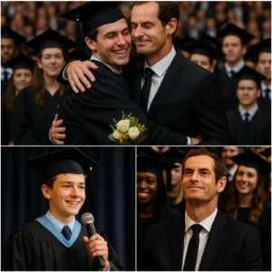 Andy Murray has once again proven why he is more than just a tennis legend. Years after promising a shy 10-year-old boy named Jamie that he would show up for his first real performance, Murray walked into the teenager’s graduation showcase with flowers in hand. The hall exploded in emotion as Jamie dropped his guitar and ran into Andy’s arms, crying with joy. Murray stayed through the entire show, cheering and reminding everyone that keeping promises is what true greatness looks like.