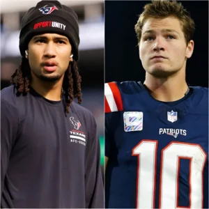 “15 MINUTES AGO”: In an interview, Drake Maye responded to a question comparing him to C.J. Stroud. He stated that C.J. Stroud would never reach his level and that most of C.J. Stroud’s plays and scoring were just luck. Drake also mentioned that if C.J. Stroud played for his team, he would only be at a B-team level. Immediately, C.J. Stroud responded with a short 10-word reply, leaving Drake Maye stunned and speechless. Now, Drake is facing disciplinary action from both his team and the NFL for these comments.