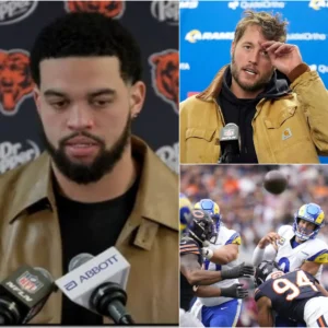 “He cheated!” Just seconds after the Chicago Bears’ heartbreaking 17–20 overtime loss to the Los Angeles Rams, Bears star Caleb Williams exploded in anger, pointing straight at Matthew Stafford and accusing him of exploiting inside information to anticipate play calls. Williams demanded that the NFL launch an immediate investigation, claiming the game was “decided before overtime even started.” Minutes later, with cameras everywhere, Stafford slowly lifted his head, flashed a cold smile, and fired back with 15 brutal sentences that stunned the entire stadium. The crowd erupted into chaos as emotions boiled over on both sidelines. Williams stood frozen, speechless, while millions of fans watched the shocking moment unfold live.