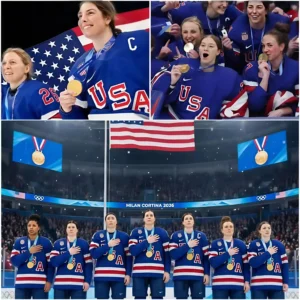 🇺🇸No one saw it coming—but the postgame moment led by Hilary Knight and the entire U.S. squad brought the arena in Milan to a standstill. After reclaiming the Olympic throne in a gold medal battle that will be talked about for decades, the captain—a woman who has spent five Olympics carrying the dreams of American hockey on her shoulders—did something that transcended the game. As the gold medals were draped around their necks and the first notes of the anthem cut through the roaring cheers, Knight didn’t just stand at attention. She leaned in, closed her eyes, and began to sing with a raw, unbridled passion that silenced the stadium.