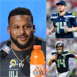 “BREAKING NEWS” Los Angeles Rams legend Aaron Donald publicly mocked the Seattle Seahawks’ victory, claiming the game was rigged and “made” by controversial referee decisions. He sarcastically remarked that the Seahawks players “couldn’t control things,” implying that widely acclaimed quarterback Sam Darnold was being overhyped and that the result “didn’t do anything good for the NFL.” Just minutes later, Darnold responded calmly with a few short, decisive words, refusing to engage in personal attacks and letting the on-field outcome speak for itself. That calm response was enough to enrage Donald: the Hall of Fame legend lost his temper in front of the media, raising his voice and turning the post-game discussion into a heated confrontation.