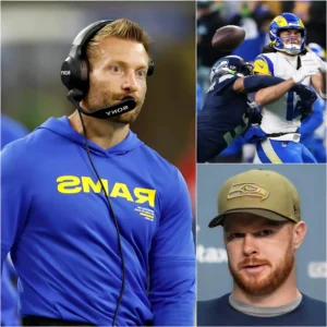 “GET OUT OF HERE, YOU CHEATER!” Just seconds after their bitter 27–31 defeat to the Seattle Seahawks at Lumen Field in the NFC Finals, the Los Angeles Rams’ head coach completely lost control. His face flushed with anger, he pointed directly at the opposing team’s bench and loudly accused the Seahawks of using high-tech equipment to “cheat,” demanding that the NFL and the referees immediately launch an urgent investigation. Five minutes later, in front of dozens of television cameras, Seattle Seahawks QB Sam Darnold slowly lifted his head, a chillingly cold smile playing on his lips, and uttered exactly 15 sharp words. Lumen Field descended into chaos, while Coach Rams stood speechless, his face pale, covering his face with his hands before hastily turning and disappearing into the tunnel, under the watchful eyes of millions of NFL fans across America watching the moment live…