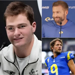 “Stafford started the season with passes into the hands of the opposition; he’s the luckiest MVP in history!” Patriots star Drake Maye angrily stated after losing the MVP race for the 2025 season by just one vote. He argued that Stafford didn’t deserve the award due to mistakes made during the season, particularly his turnovers in key games. Immediately, Rams head coach Sean McVay defended his player against Maye’s accusations, making the tension even more intense. McVay emphasized that Stafford worked tirelessly and didn’t let minor mistakes affect his exceptional career, adding that the MVP award was a well-deserved recognition of his hard work throughout the season.