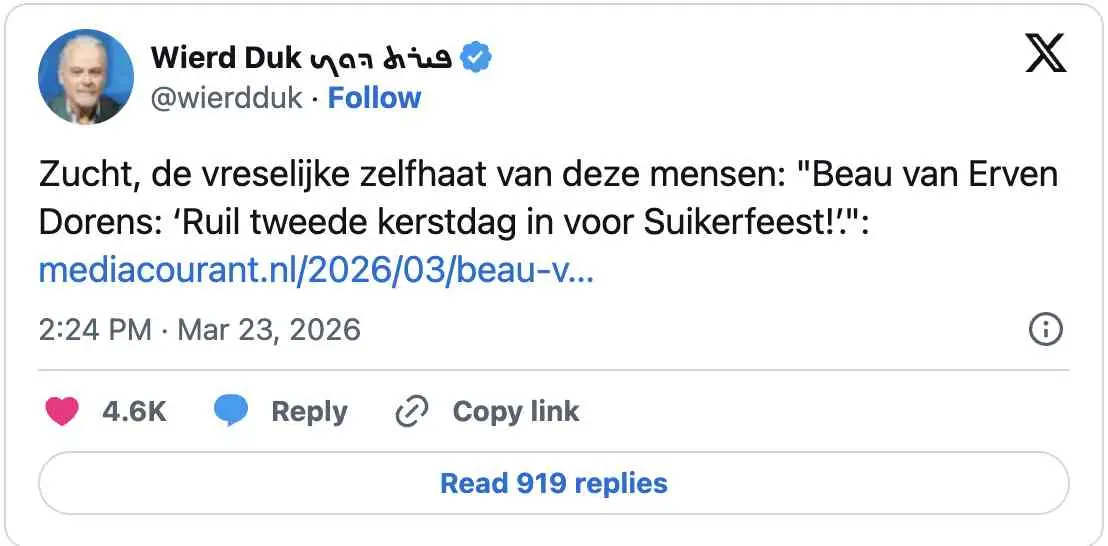Beau van Erven Dorens heeft met zijn opmerking een gevoelige discussie opnieuw op scherp gezet. Zijn voorstel om Tweede Kerstdag in te ruilen voor het Suikerfeest wordt door sommigen gezien als een sympathiek en inclusieve geste, door anderen als een naïeve of zelfs gevaarlijke aantasting van de Nederlandse culturele tradities.