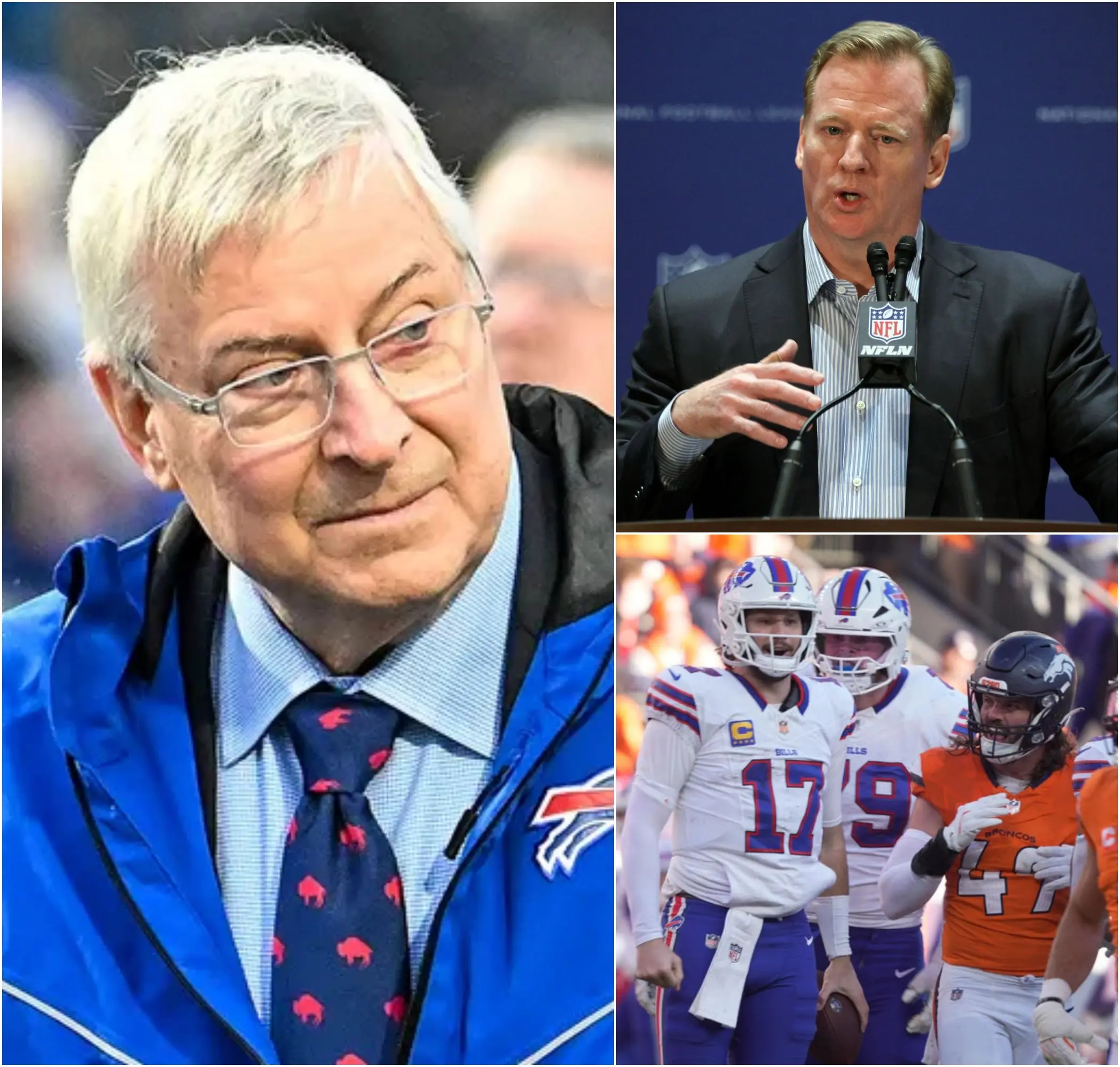 BREAKING NEWS: Buffalo Bills owner Terry Pegula has harshly criticized the NFL following the Bills’ loss to the Broncos. He claimed that the NFL deliberately manipulated the outcome to ensure the Broncos advanced, aiming to create a dream AFC Championship matchup between the Patriots and the Broncos. Pegula stated that the NFL’s decision was a setup designed to benefit a high-profile, commercially lucrative game that would draw significant attention. However, the response from NFL Commissioner Roger Goodell came as a surprise to Pegula and Bills fans, leaving the football community shocked.