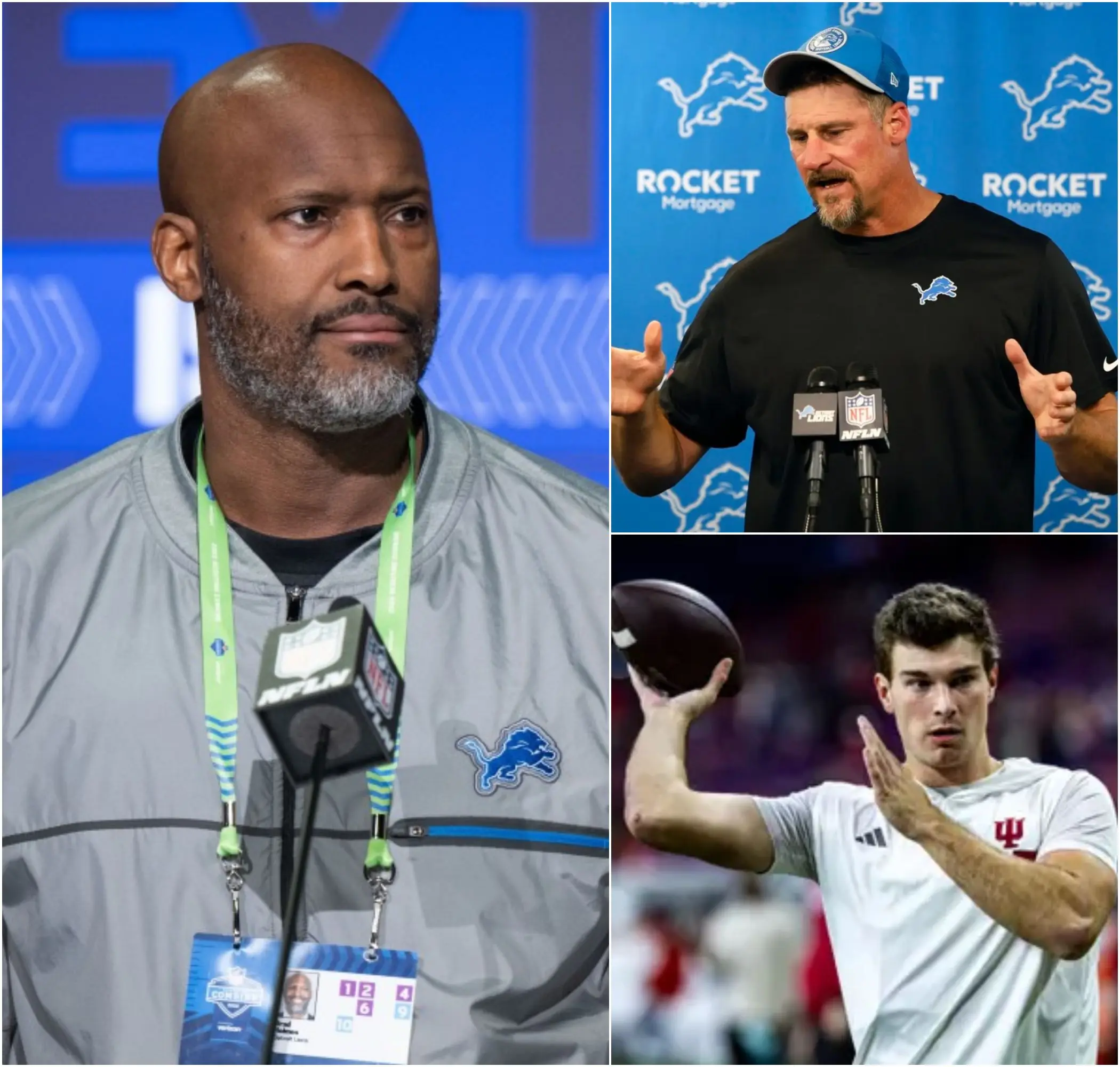 BREAKING NEWS: Dan Campbell slammed his hand on the conference table, his voice low but filled with intensity as he declared that whether it’s Mendoza or Goff, he doesn’t care. He looked up and locked eyes with the room as everyone held their breath. “The only thing I need is a quarterback who can take Detroit to the Super Bowl.” In that tense moment, Brad Holmes stood on a razor’s edge, where every decision could define an entire era. There is no turning back now. Detroit has to choose—and it has to choose right.