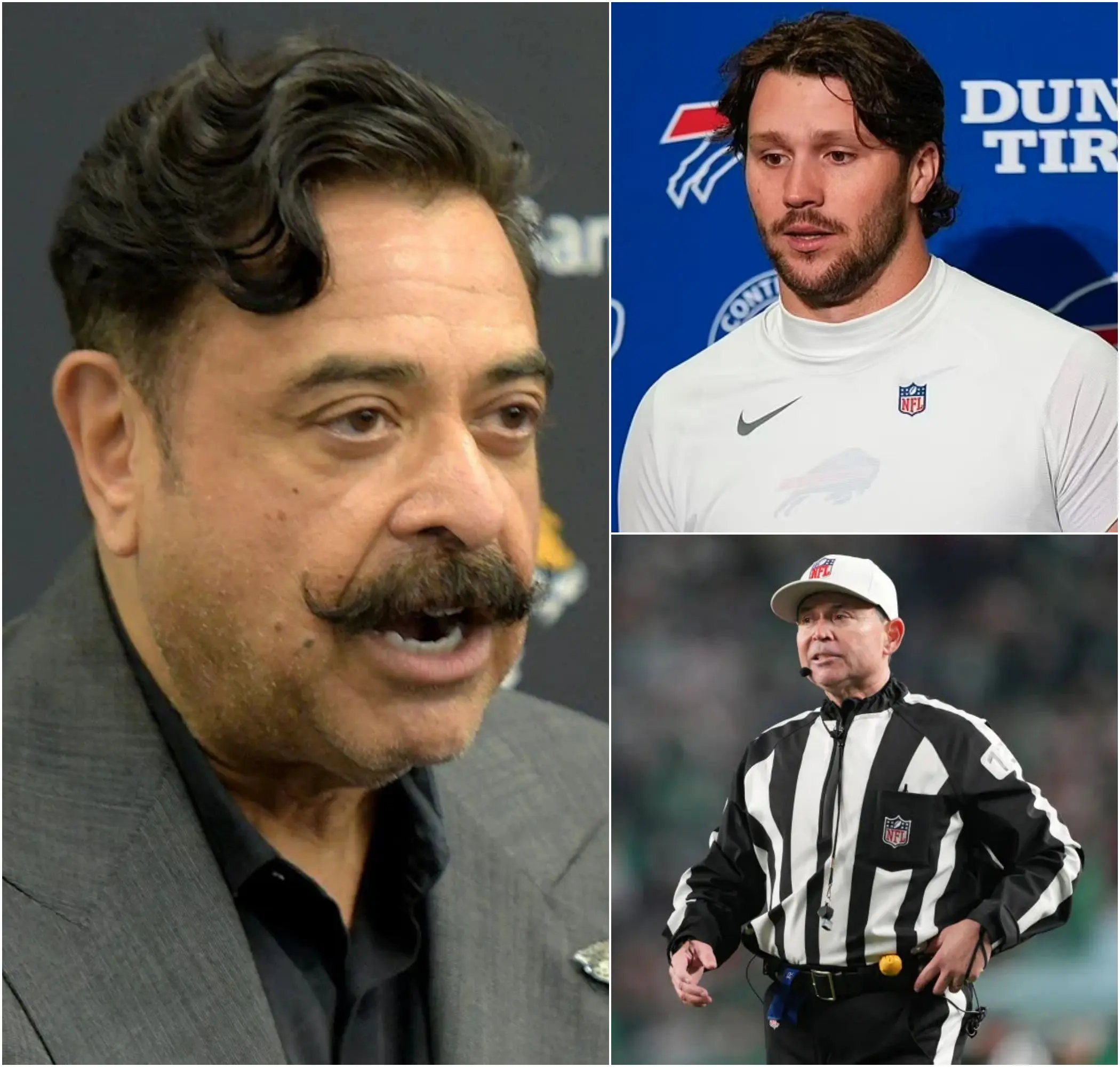 “BREAKING NEWS: Jacksonville Jaguars owner Shahid Khan sent shockwaves through the league after announcing he plans to file a lawsuit against the NFL over officiating issues, specifically targeting head referee Brad Allen for alleged bias in favor of the Buffalo Bills.