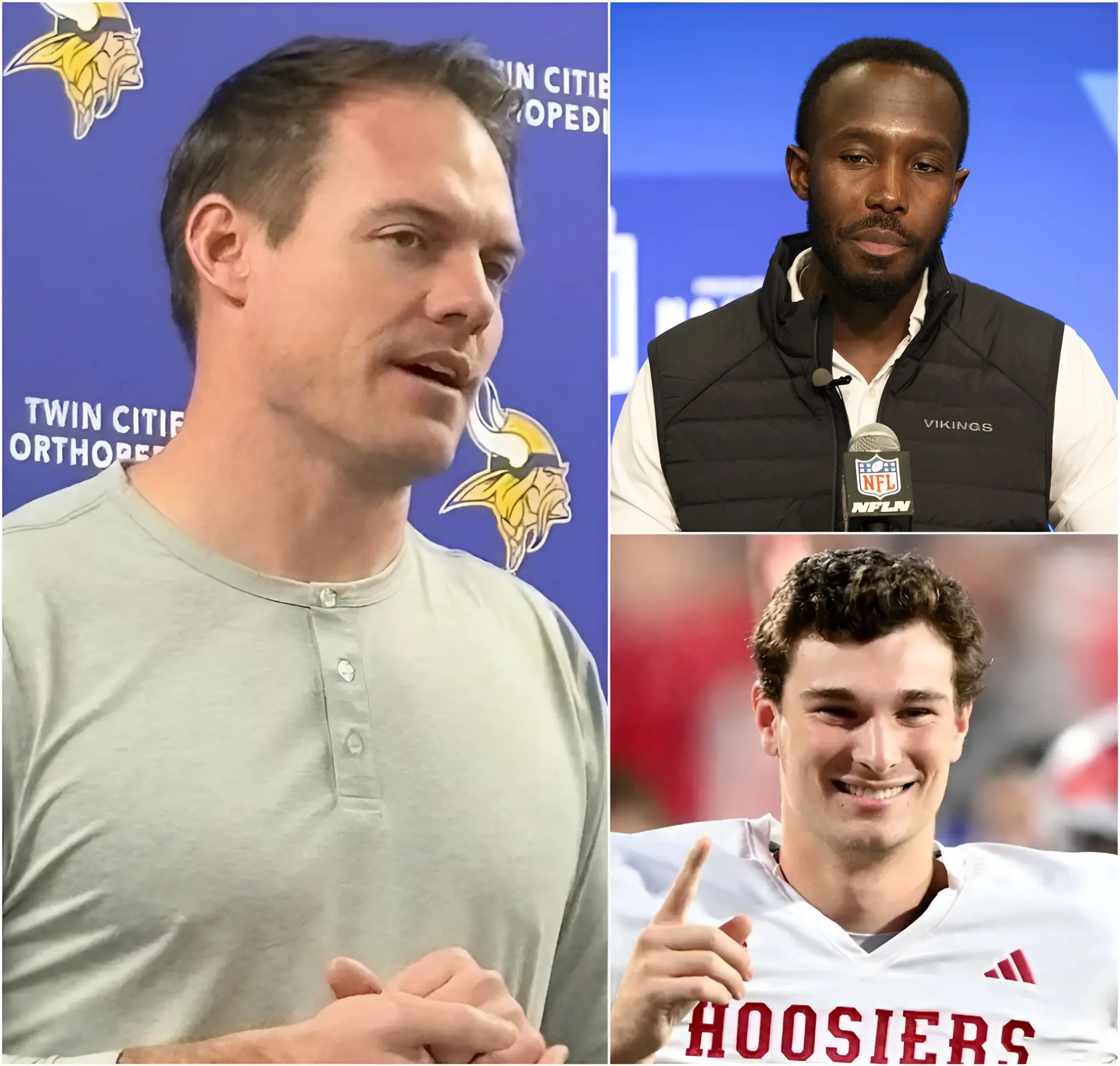 BREAKING NEWS: Kevin O’Connell slammed his hand on the conference table, his voice low but filled with intensity as he declared that whether it’s Mendoza or J.J. McCarthy, he doesn’t care. He looked up and locked eyes with the room as everyone held their breath.