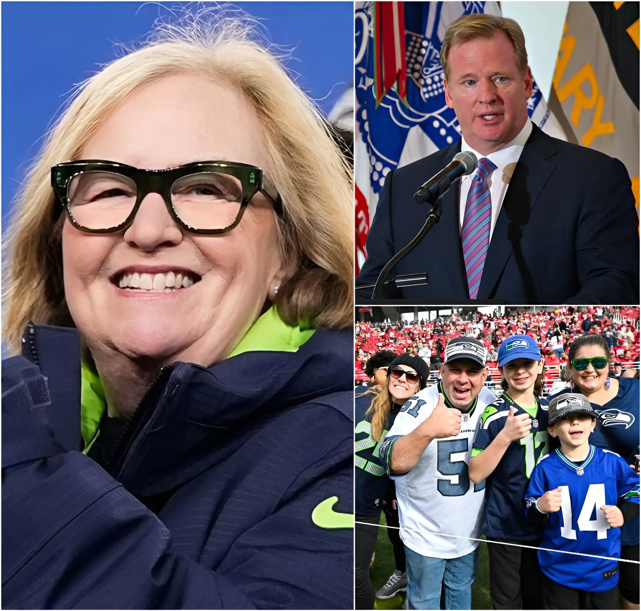 BREAKING NEWS: Seahawks owner Jody Allen publicly criticized the NFL, claiming that the number of tickets allocated to Seattle fans was significantly lower than those given to Patriots supporters and celebrities for the Super Bowl at Levi’s Stadium. She accused the league of unfair distribution, arguing that it diminishes the voices of loyal fans and creates a psychological advantage for the opponent in the stands. Jody Allen stressed that the Super Bowl should be a celebration for true fans, not a stage that favors fame and status. NFL Commissioner Roger Goodell immediately responded, stating that the ticket allocation process follows long-standing league practices and is designed to balance the interests of all parties involved. His response has only fueled further debate over the NFL’s transparency and fairness in the lead-up to the biggest game of the season.