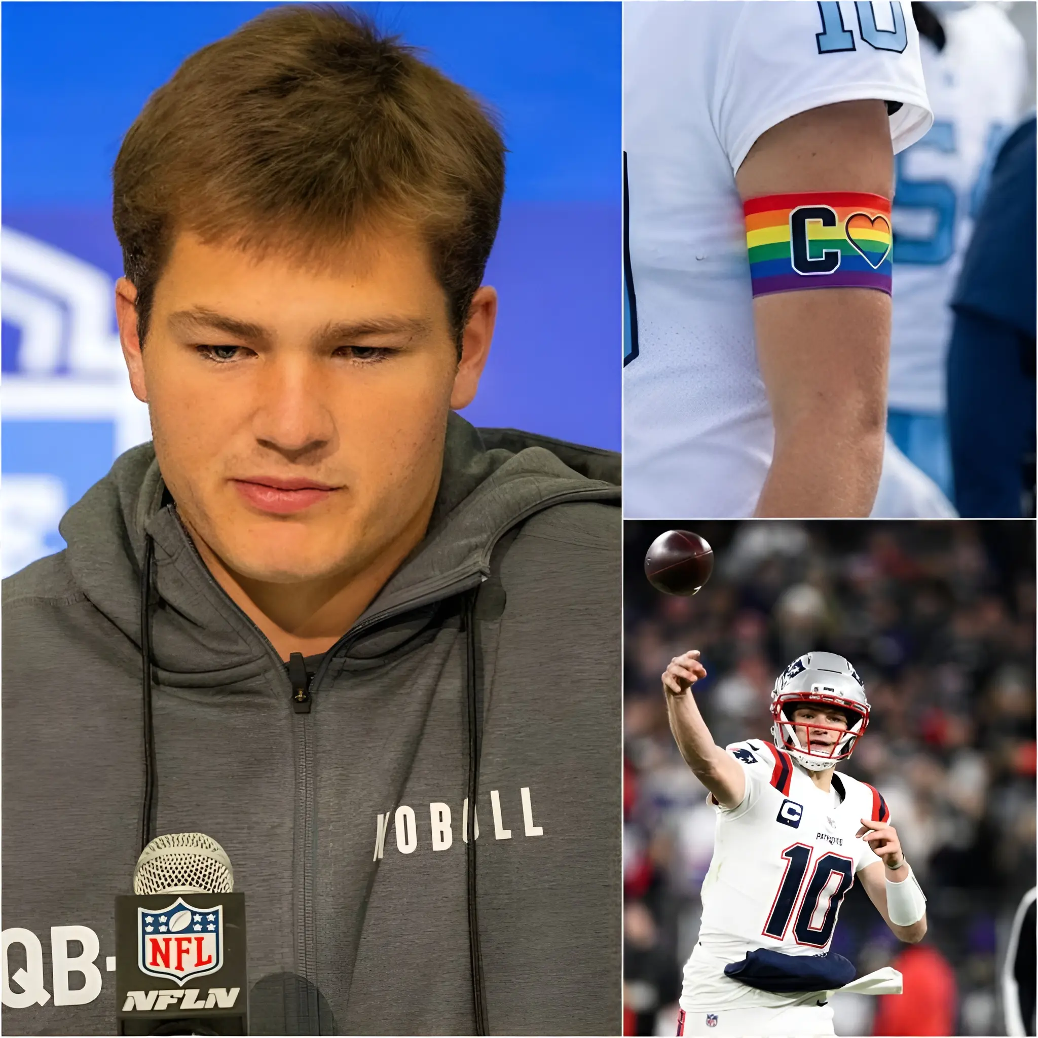 BREAKING: Drake Maye, the rising star quarterback who has captured the attention of football fans across the nation, has sparked a heated debate just days before Super Bowl LX. Reports confirm that Maye has refused to wear an LGBT rainbow armband during the highly anticipated game against the Seattle Seahawks, a decision that has ignited controversy on social media and in sports circles alike.