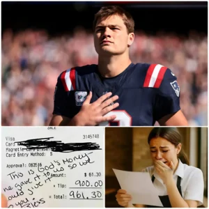 🚨 BREAKING NEWS: Lily, a 24-year-old waitress, had no idea she was serving New England Patriots QB Drake Maye. With his baseball cap low and a simple smile, Maye quietly dined, going unnoticed by most. But as he left, he left behind a small, folded note with a warm nod. Intrigued, Lily opened it — and within seconds, she was in tears. What Maye wrote wasn’t just a thank you; it was a life-changing message that left millions of fans, alongside Lily, overcome with emotion. The contents of that letter have left everyone stunned. 👇👇 👇