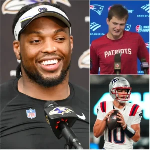 “I think a team that has grown accustomed to cheating like the Patriots, with Spygate and Deflategate still there, continuing to play dirty to beat us is nothing surprising.” Ravens star Derrick Henry said bluntly after the Patriots’ win over the Ravens, a remark that immediately sent the NFL community into an uproar and turned all eyes toward New England. However, Patriots superstar Drake Maye appeared completely unfazed by the wave of criticism, offering only a subtle, knowing smile in front of the media before responding with a single short sentence powerful enough to silence everyone, because for Pats Nation, the answer was already clear: the scoreboard after the game said it all.