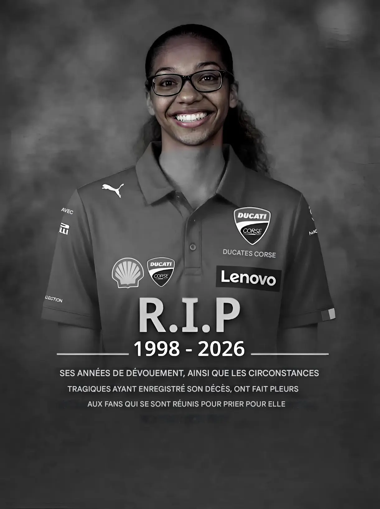 Pour beaucoup au sein de la famille Ducati, elle était bien plus qu’une simple collaboratrice. C’était un visage familier dans le paddock, quelqu’un qui travaillait sans relâche dans les coulisses pour renforcer le lien entre l’équipe italienne emblématique et ses fans mondiaux. Son rôle consistait souvent à coordonner les activités des supporters, à soutenir les événements communautaires et à veiller à ce que les supporters se sentent connectés à l’équipe qu’ils aimaient. Ceux qui ont travaillé à ses côtés se souviennent d’une jeune femme pleine d’énergie, de créativité et d’un enthousiasme sans faille pour le sport automobile.