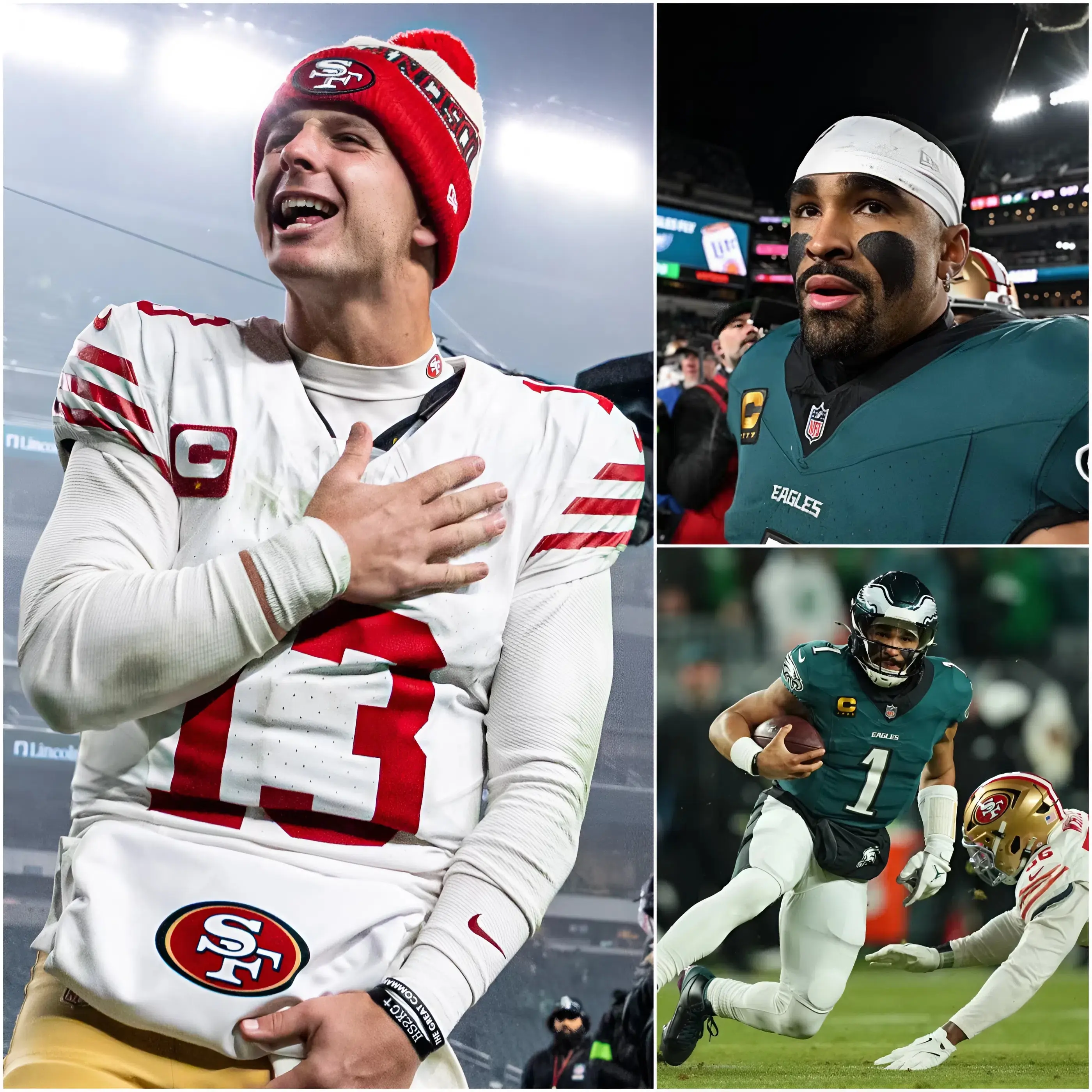 “Cheating is nothing new for the 49ers — history speaks for itself.” Jalen Hurts said bluntly after Philadelphia’s 19-23 loss to San Francisco, a remark that instantly sent the NFL community into an uproar and turned all eyes toward the Bay Area. The comment spread quickly, reigniting old narratives and fueling heated debates online. However, 49ers quarterback Brock Purdy appeared completely unfazed by the wave of criticism, offering only a calm, knowing smile in front of the media before responding with a single short sentence powerful enough to silence the noise—because for the Faithful, the answer was already clear: the scoreboard after the game said it all.
