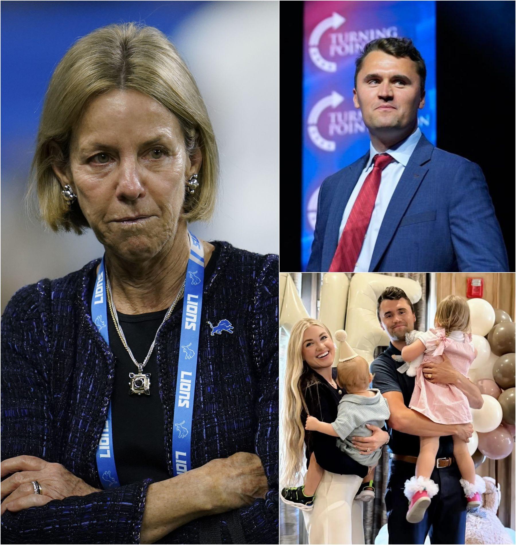 The tension grew even heavier when chilling messages were sent to his loved ones, allegedly from the same figure behind the assassination, leaving them to live under the constant shadow of fear. But it was at that moment that Detroit Lions owner Sheila Ford Hamp stepped forward with a statement that electrified the public. Speaking firmly, she declared, “Charlie’s family is not alone. The Lions and the entire Detroit community will stand up for them!” Her words carried weight not only as a symbolic gesture but also as a rallying call, transforming grief into solidarity, and isolation into unity.
