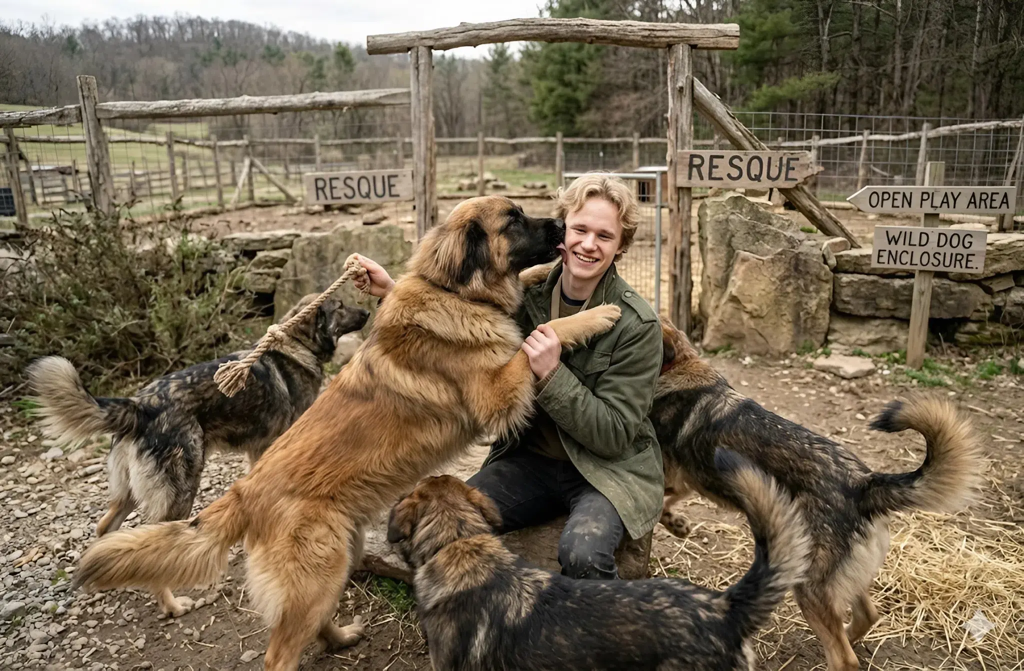 Ilia knelt beside Max, placing a careful hand near him. He did not rush the interaction, allowing the dog to approach on his own terms. The connection appeared immediate, built on patience rather than urgency or expectation.