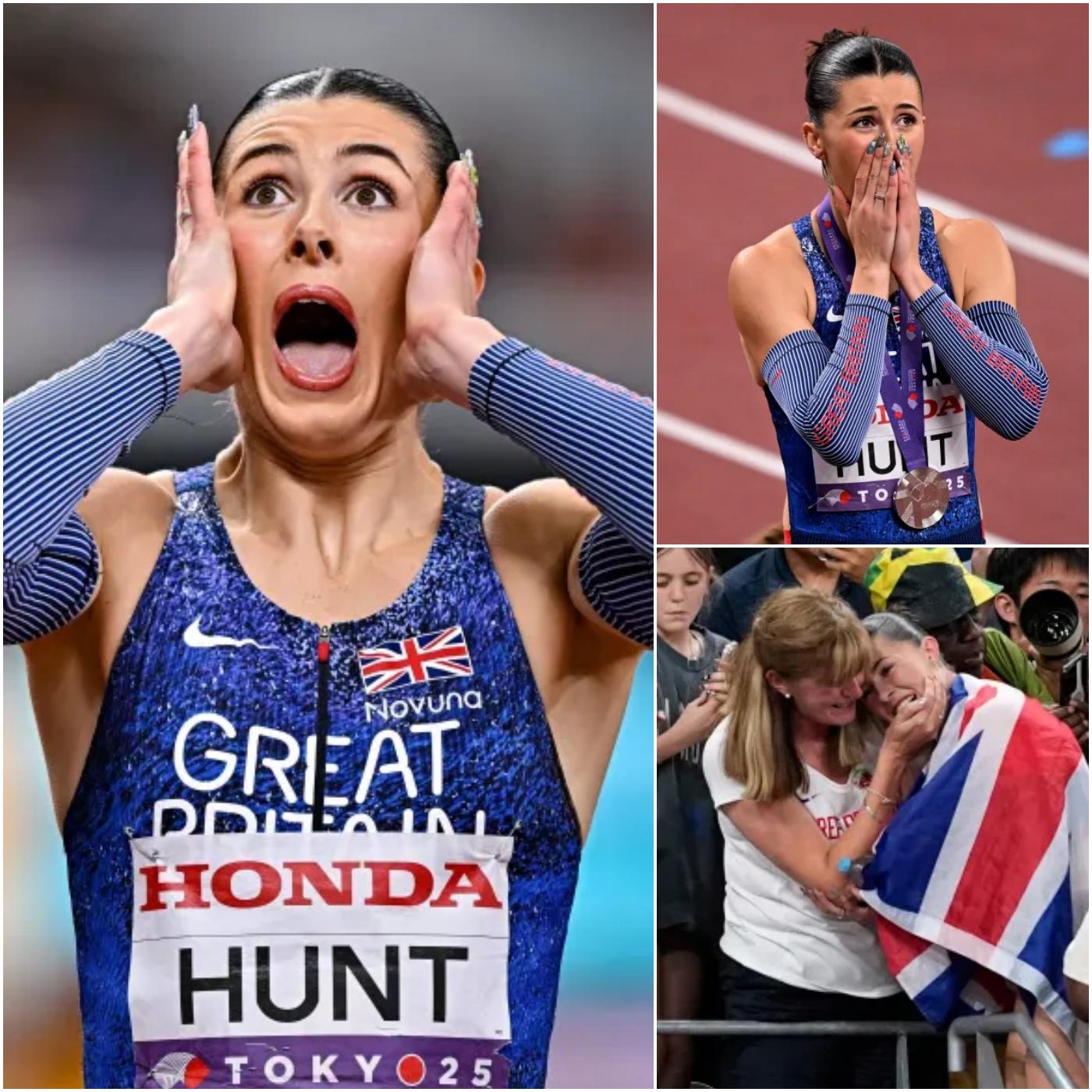 In the electric atmosphere of Tokyo’s National Stadium, under the glaring lights of the World Athletics Championships, a moment of raw human emotion unfolded that transcended the thrill of competition. Britain’s Amy Hunt, the 23-year-old sprint sensation, crossed the finish line in second place to secure a stunning silver medal in the women’s 200m final on September 19, 2025. But it was what happened in the aftermath that etched the evening into the hearts of spectators, fellow athletes, and viewers around the world: Hunt collapsed into uncontrollable tears, her body shaking as she clutched her chest, whispering a poignant tribute to her late grandmother, who had passed away mere hours before the race.