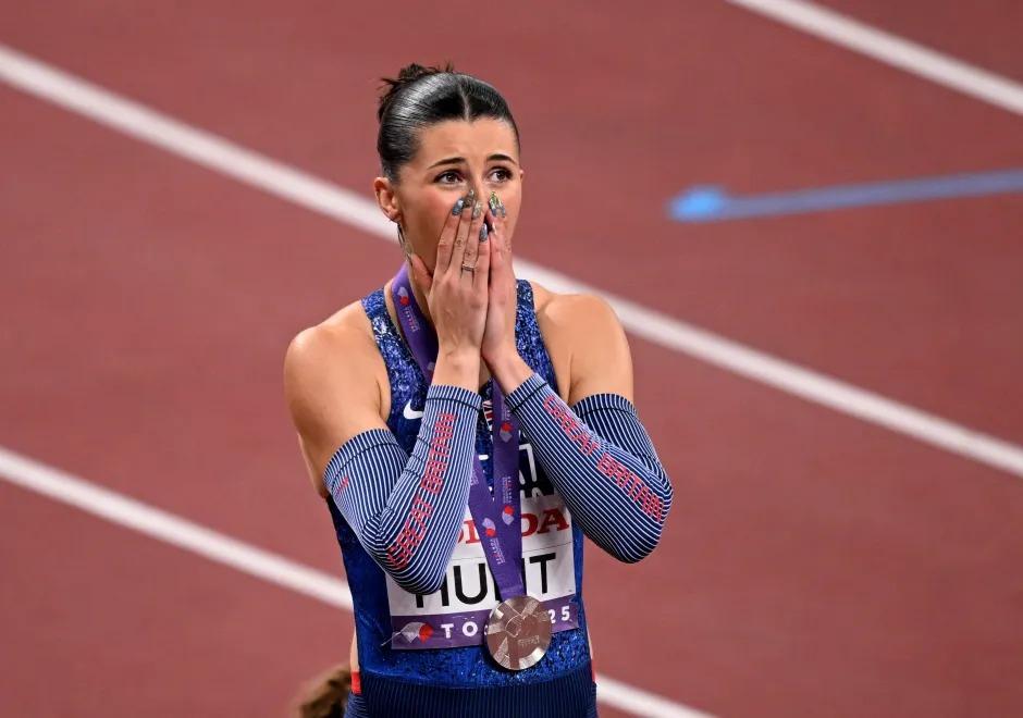 The tribute poured out in fragments as Hunt composed herself enough to speak to reporters, her eyes red-rimmed but shining with a fierce light. Her grandmother, whom she affectionately called Nana, had been her rock—a constant presence at track meets, a source of unwavering encouragement through the darkest chapters of Hunt’s career. Just 12 hours before the final, Nana had slipped away peacefully at home in England, surrounded by family. Hunt had learned the news mid-warm-up, her phone buzzing with the devastating call from her father. In a split-second decision that spoke volumes about her resilience, she chose to lace up her spikes anyway. “She always said I could do anything if I just believed,” Hunt later shared, her voice cracking. “She fought so hard through her illness, never complaining, always cheering me on. When I got that text… I felt her with me more than ever. Every step on that track was her pushing me forward.”
