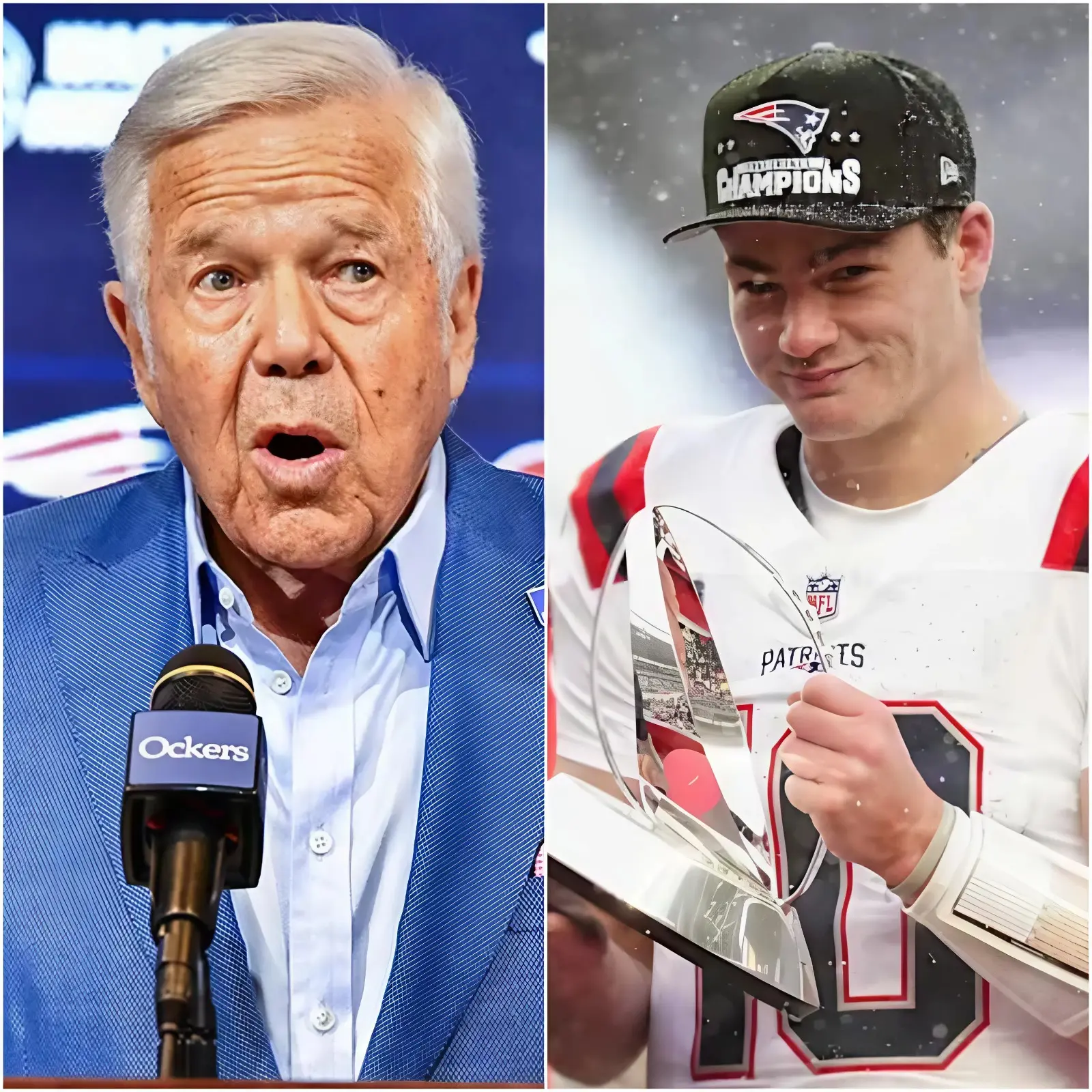 “HE’S NOT JUST A CHAMPION, HE’S… the true soul of the New England Patriots!” Right after the crucial moment before a high-stakes game at the Super Bowl, owner Robert Kraft announced he would give him a 5% stake in the team, worth millions of dollars, making him a co-owner and an integral part of shaping the Patriots’ future if they won. Immediately, the talented young quarterback Drake Maye responded with 15 words that silenced the entire room for a moment, before it erupted in thunderous applause and cheers…