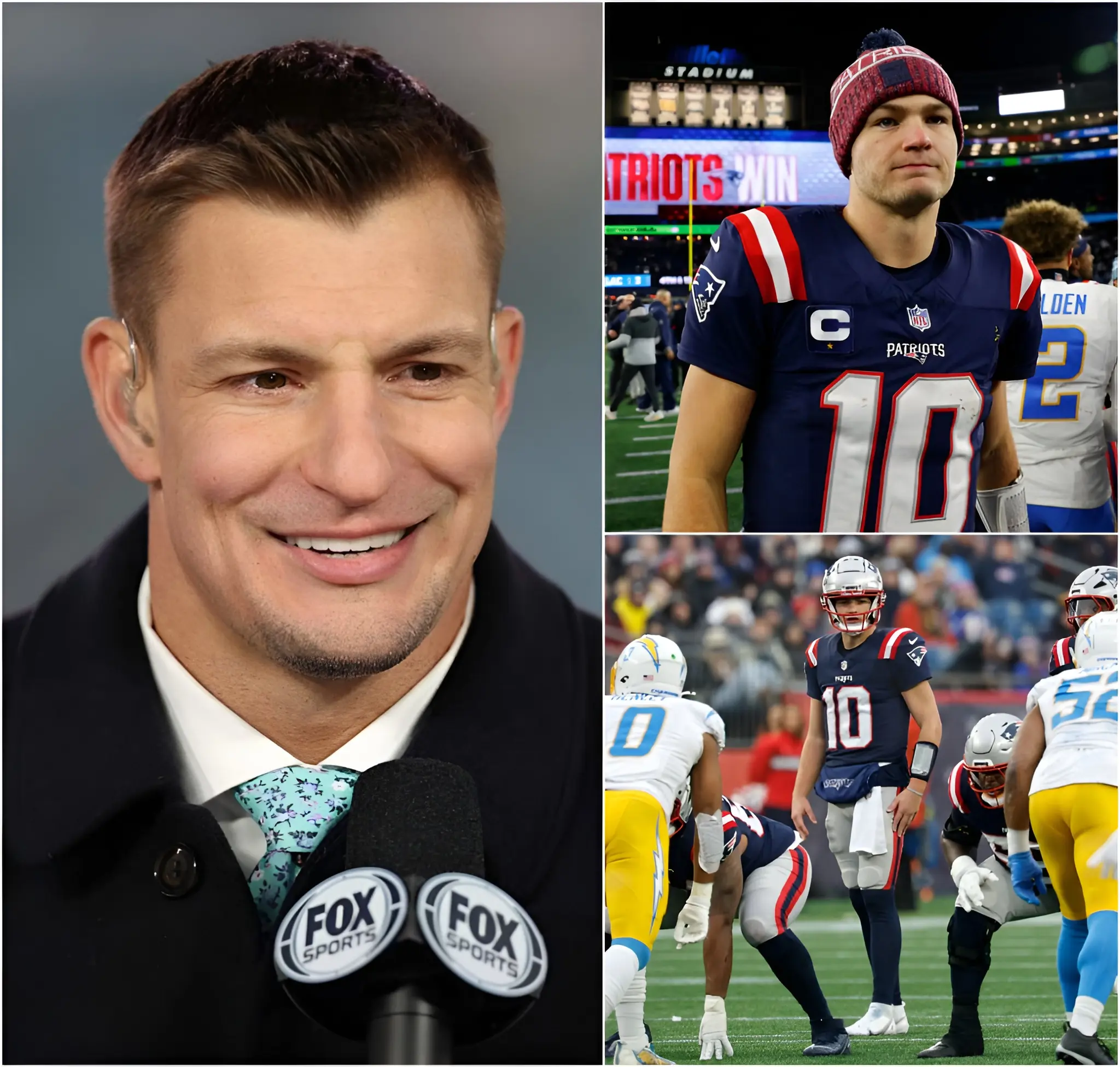 HOT NEWS: NFL legend Rob Gronkowski has stepped forward to defend Drake Maye following a below-par performance in the Patriots’ win over the Chargers.Gronk emphasized that playoff victories are about resilience, not perfect stat lines.He praised Maye’s composure under pressure and leadership in his first postseason test.Gronkowski also revealed he sent a special gift to the young quarterback after the game.The gesture celebrated New England’s first playoff win since their Super Bowl LIII championship season.