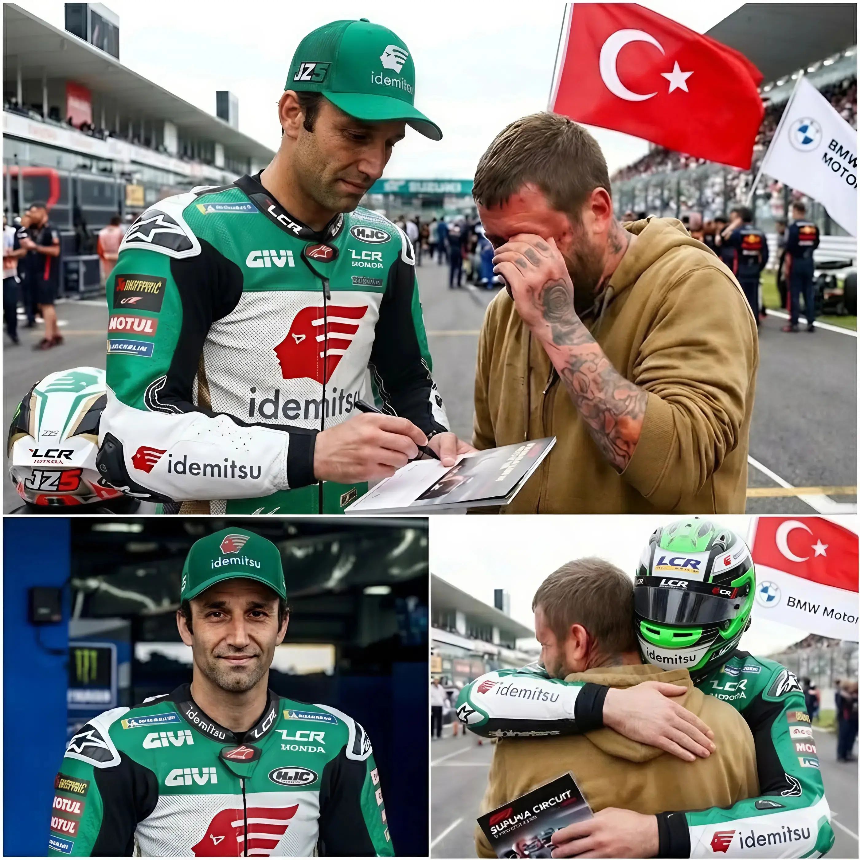 À mesure que le fan se rapprochait, l’atmosphère passa de la prudence à la curiosité. Zarco se pencha légèrement, ouvert et attentif. La lettre, froissée à force d’être serrée contre lui, lui fut tendue de mains tremblantes. Ce qui se déroula en ces quelques secondes laissa l’assistance sans voix.