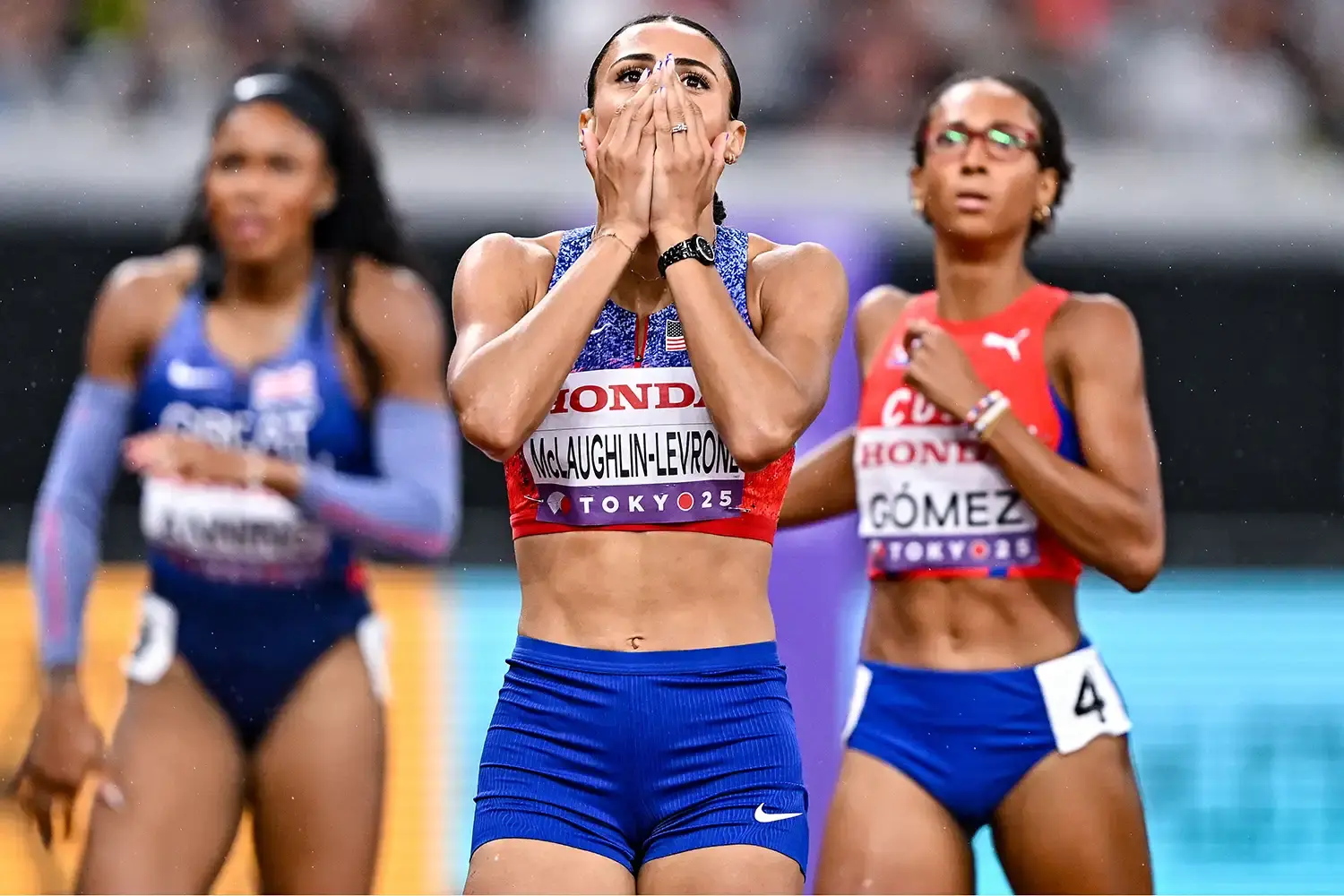 “It was so cool to see his reaction,” Sydney said with a smile that only partially masked the emotion behind her words. The usually private McLaughlin-Levrone chose this time to share the message that has quickly become the talk of the athletics world. According to Sydney, Andre sent her and the entire U.S. team a 12-word note that cut through the noise of competition and the endless stream of media attention. The words themselves have not been publicly disclosed, but Sydney described them as “perfect,” adding that they carried a weight only those closest to her could fully understand.