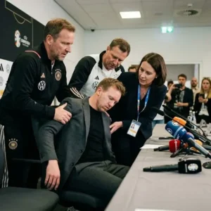 Der deutsche Fußball steht unter Schock. Vor nur 30 Minuten ereignete sich im Besprechungsraum der DFB-Zentrale in Frankfurt ein dramatischer Vorfall, der die gesamte Nation bewegt und die Vorbereitungen auf…