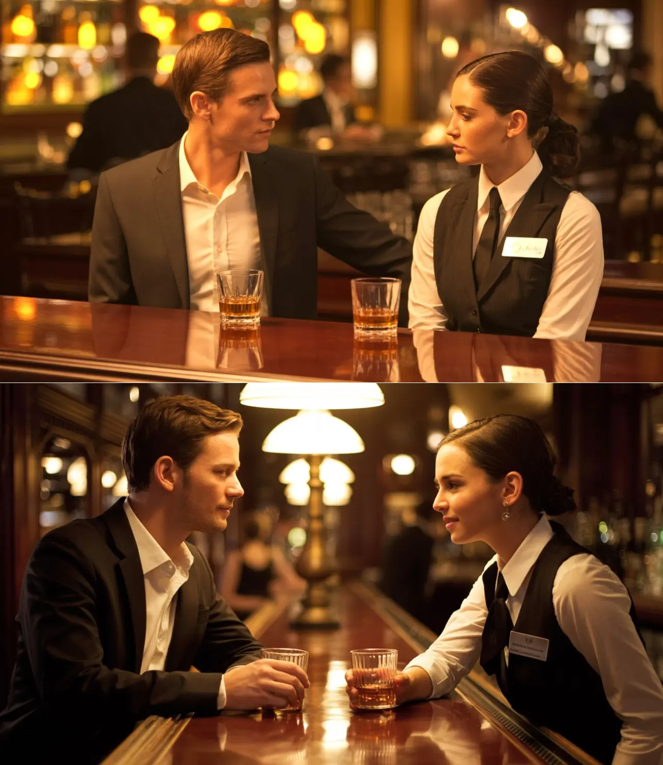 Als sich die Barkeeperin abwandte, um scheinbar ihrer Arbeit nachzugehen, traf er eine impulsive Entscheidung. Er griff nach ihrem Handgelenk – nicht fest, nicht aggressiv, sondern aus einem Reflex heraus. Er wollte Antworten.