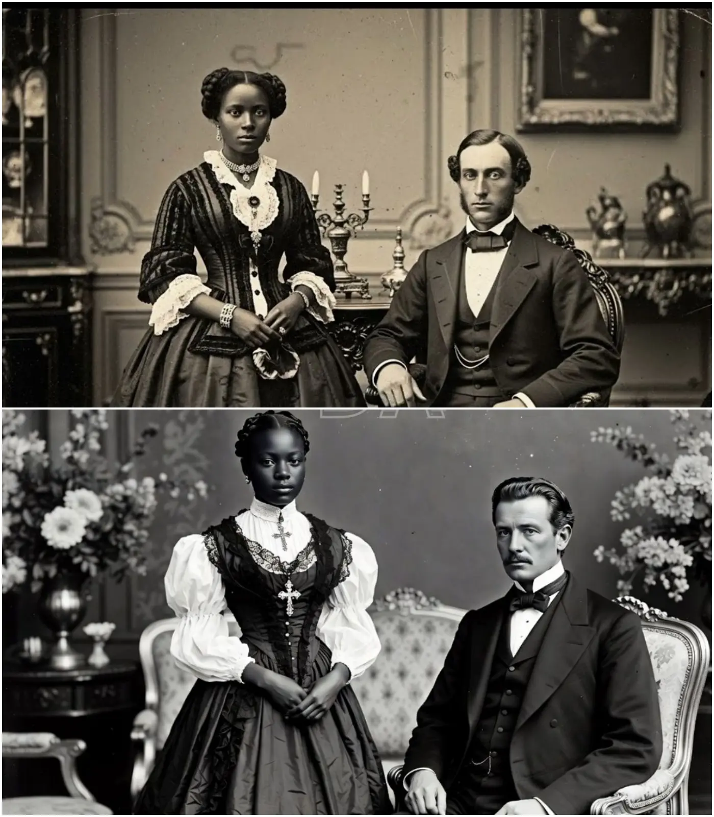 همست السيدات المحترمات من خلف مراوحهن: “لقد جنّ المقاول! إنه يعيش مع امرأة سوداء! ويعاملها كما لو كانت واحدة منا!”