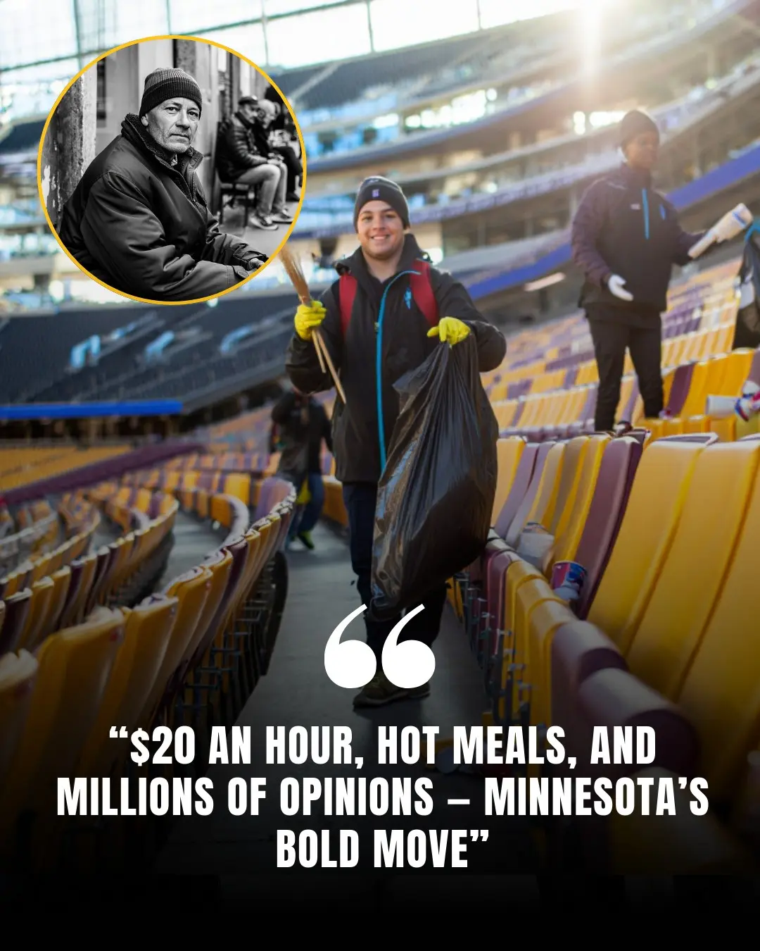 The Vikings’ decision to hire homeless workers to help tidy the stadium, paying $20 an hour while also providing hot food and drinks, has sparked widespread conversation about compassion, opportunity, and the role professional sports organizations can play in their communities.