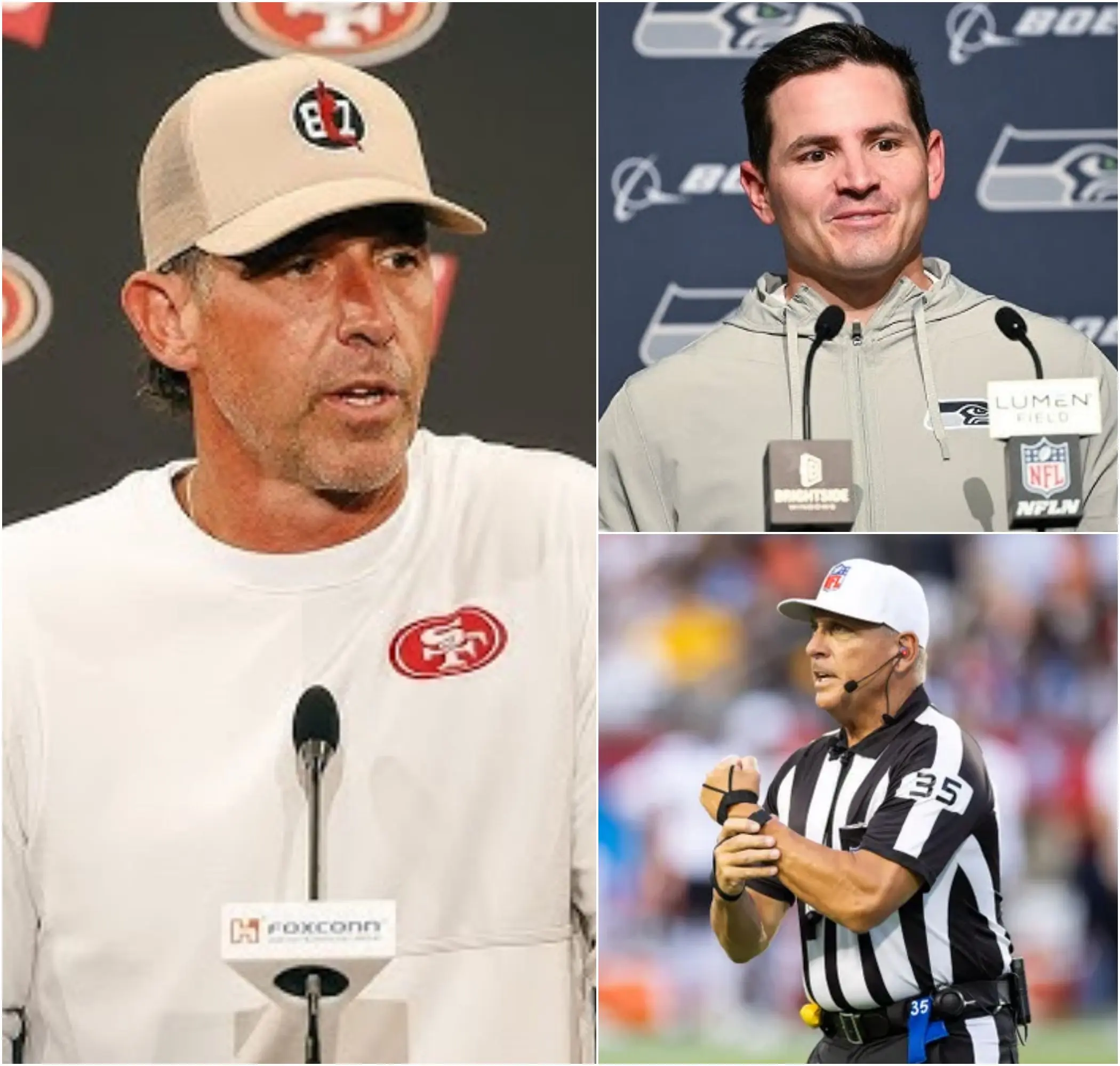 The suggestion that there might be collusion between the Seahawks’ organization and the officials sent shockwaves through the media room, and the story quickly spread across NFL news outlets. The idea that the referees could have been influenced by anything other than the play on the field was a dangerous claim, and it added fuel to an already incendiary situation. Shanahan’s words created a storm of media buzz, with analysts and commentators offering their own takes on the situation, each adding more layers to the growing controversy.