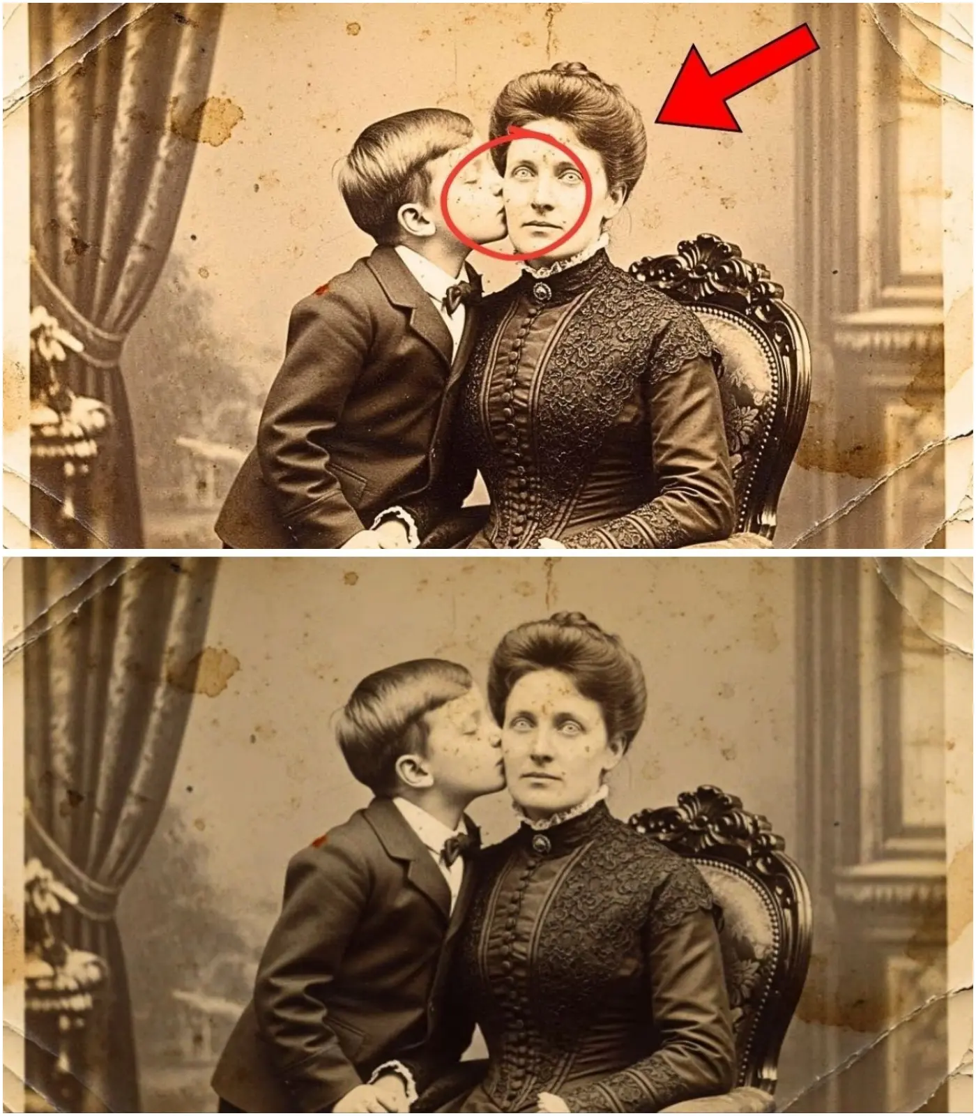 Ma nel 2022, durante il restauro digitale professionale della fotografia, lo specialista notò qualcosa di inquietante nello sguardo della madre.