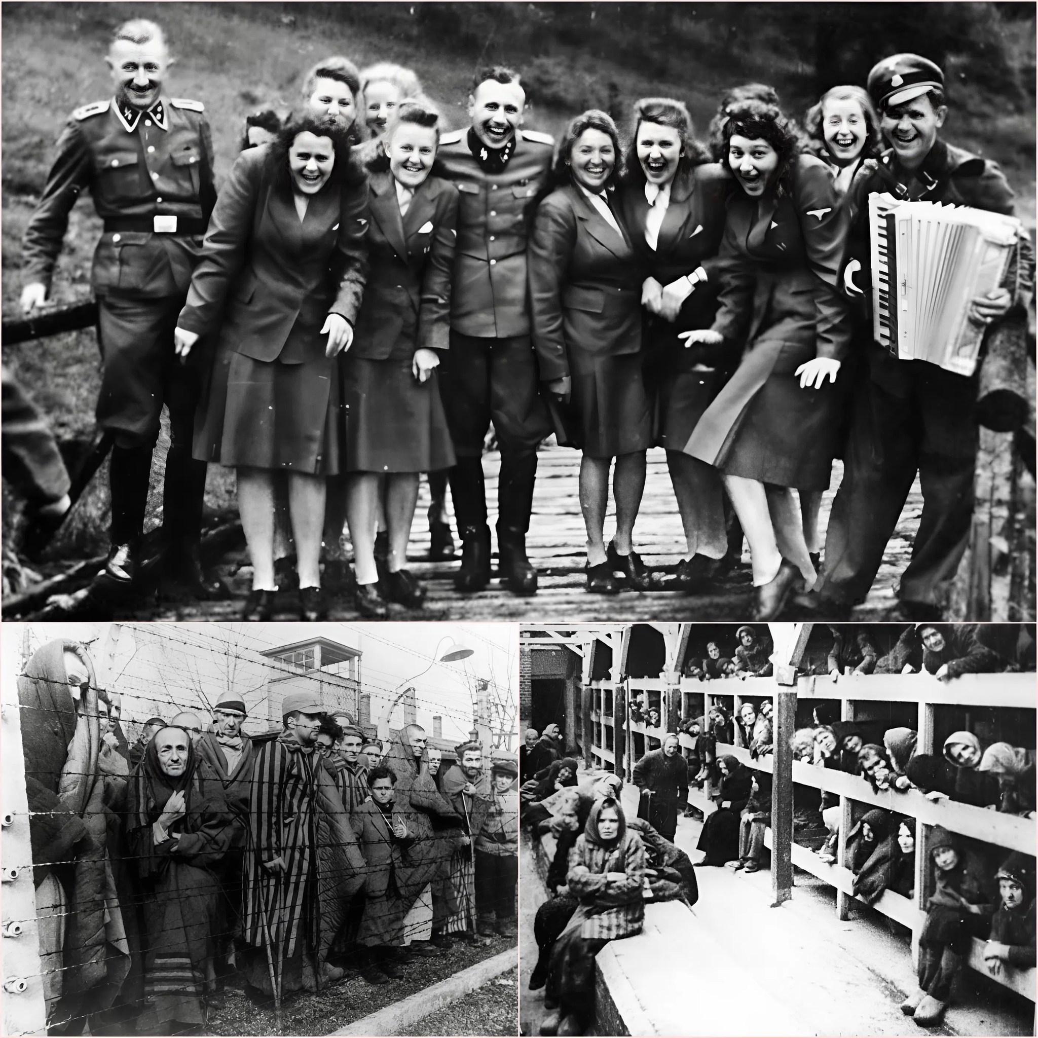 L’album de Karl Höcker, découvert après la guerre, regroupe 116 photographies prises entre juin 1944 et janvier 1945. On y voit des SS chantant, riant, ou partageant des myrtilles lors d’une excursion. Une image montre même un accordéoniste menant un chœur de 70 SS, dont certains supervisaient directement l’extermination. À quelques kilomètres de là, au même moment, des centaines de milliers de Juifs hongrois étaient déportés vers Auschwitz-Birkenau, triés à la descente des trains, et pour la plupart envoyés directement aux chambres à gaz. Ce contraste saisissant entre la légèreté des bourreaux et l’horreur infligée à leurs victimes est insoutenable.