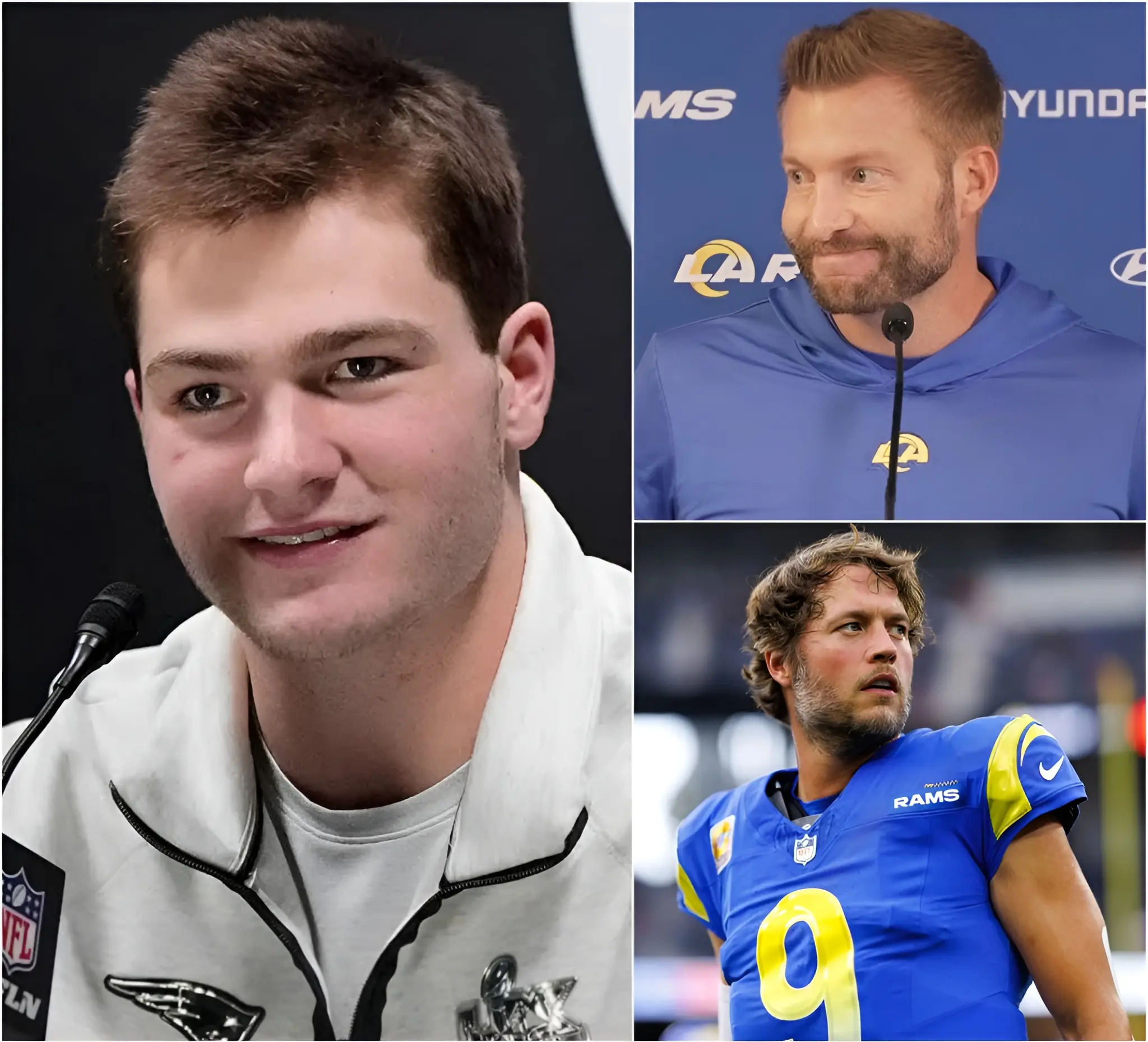 “Stafford started the season with passes into the hands of the opposition; he’s the luckiest MVP in history!” Patriots star Drake Maye angrily stated after losing the MVP race for the 2025 season by just one vote. He argued that Stafford didn’t deserve the award due to mistakes made during the season, particularly his turnovers in key games. Immediately, Rams head coach Sean McVay defended his player against Maye’s accusations, making the tension even more intense. McVay emphasized that Stafford worked tirelessly and didn’t let minor mistakes affect his exceptional career, adding that the MVP award was a well-deserved recognition of his hard work throughout the season.